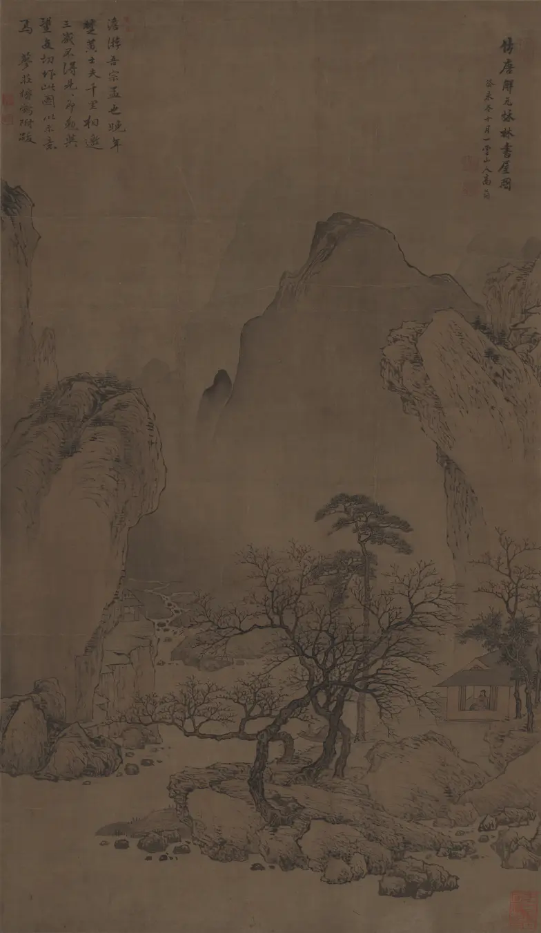 描绘秋日山林中的书屋场景,表现文人雅士的隐逸生活。