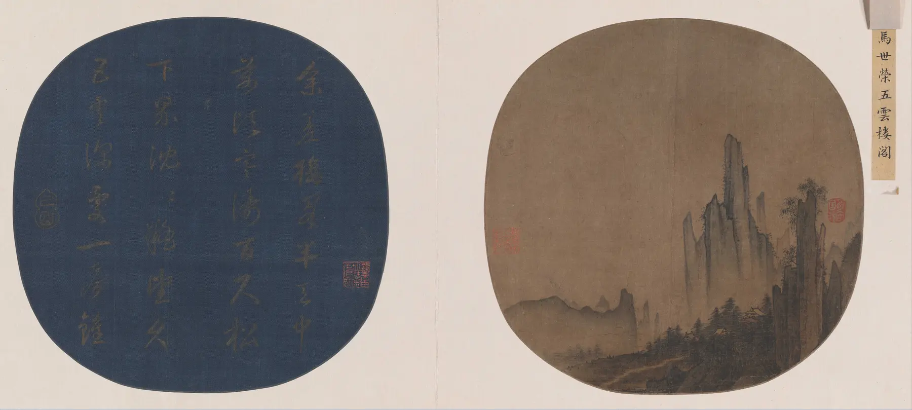 《五云楼阁图页》是南宋宫廷画家马世荣的一幅绢本设色山水画,描绘了云雾缭绕中的楼阁景致,现藏于故宫博物院。