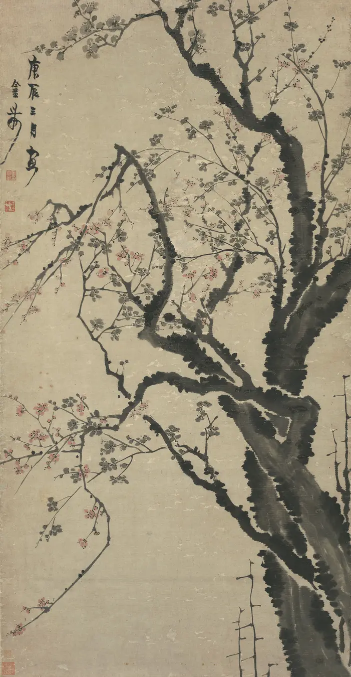 欣赏时可关注画家如何以书法般的线条勾勒梅花枝干,体会其古拙、生涩的笔墨趣味,以及画面中蕴含的文人清高孤傲之气。