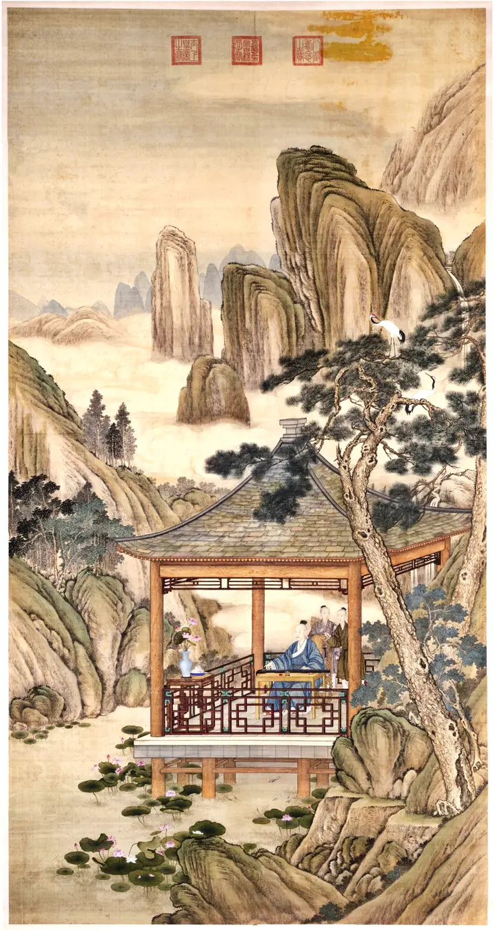 The Qianlong Emperor Viewing Lotuses and Playing the Qin