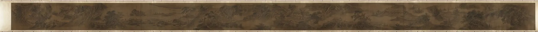 这幅手卷作品描绘了古代送粮的繁忙场景。欣赏时可以从左至右观看,感受画面中队伍行进的动态节奏和整体氛围。作品通过人物与马匹的组合,展现了劳动生活的生动一面,是了解明代风俗画的窗口。